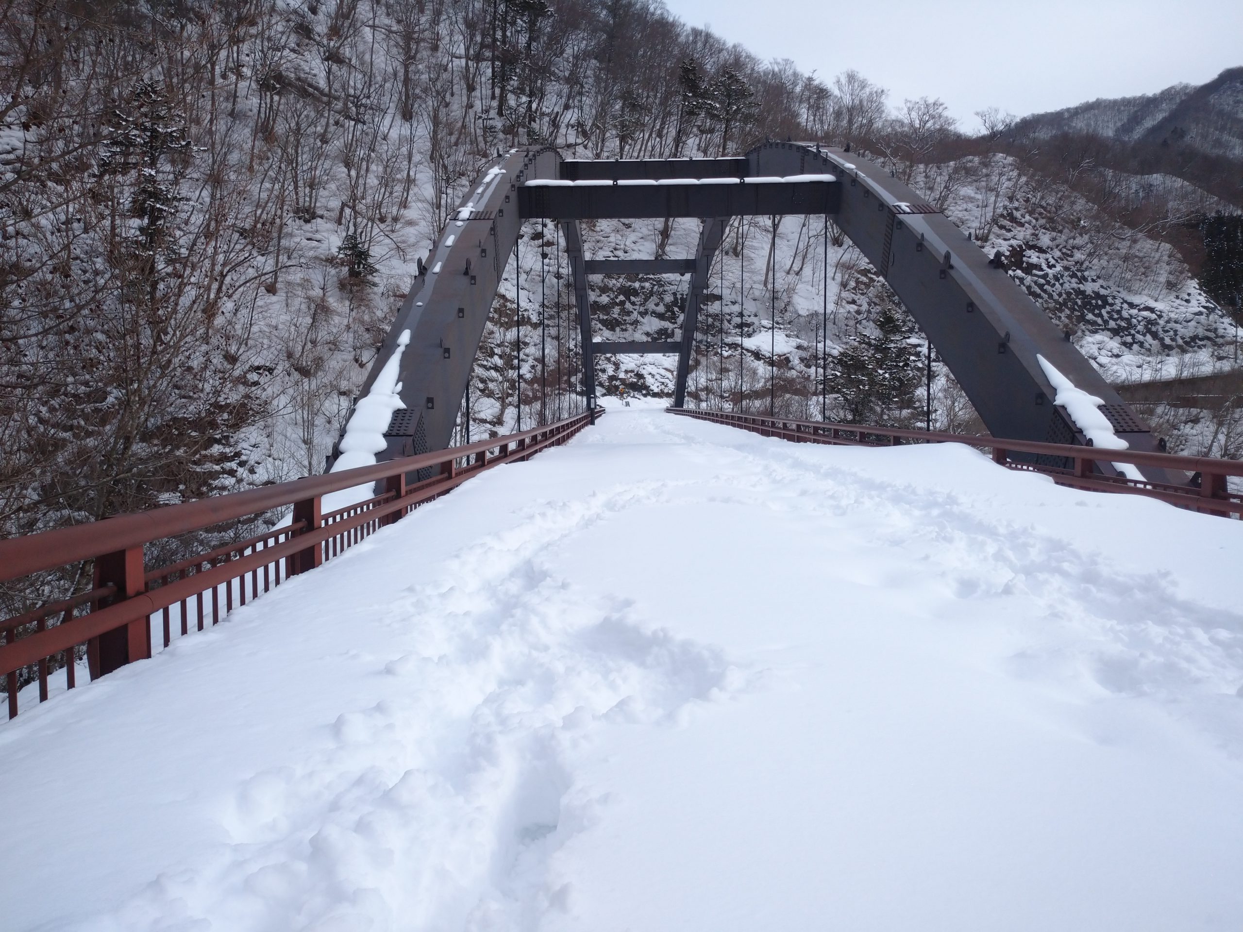 赤沢橋まで来る頃には、膝下まで埋まるほど。スノーシューなしで来る猛者はそうそういないようです。スノーシューさえあれば本当に気持ちよさそう!