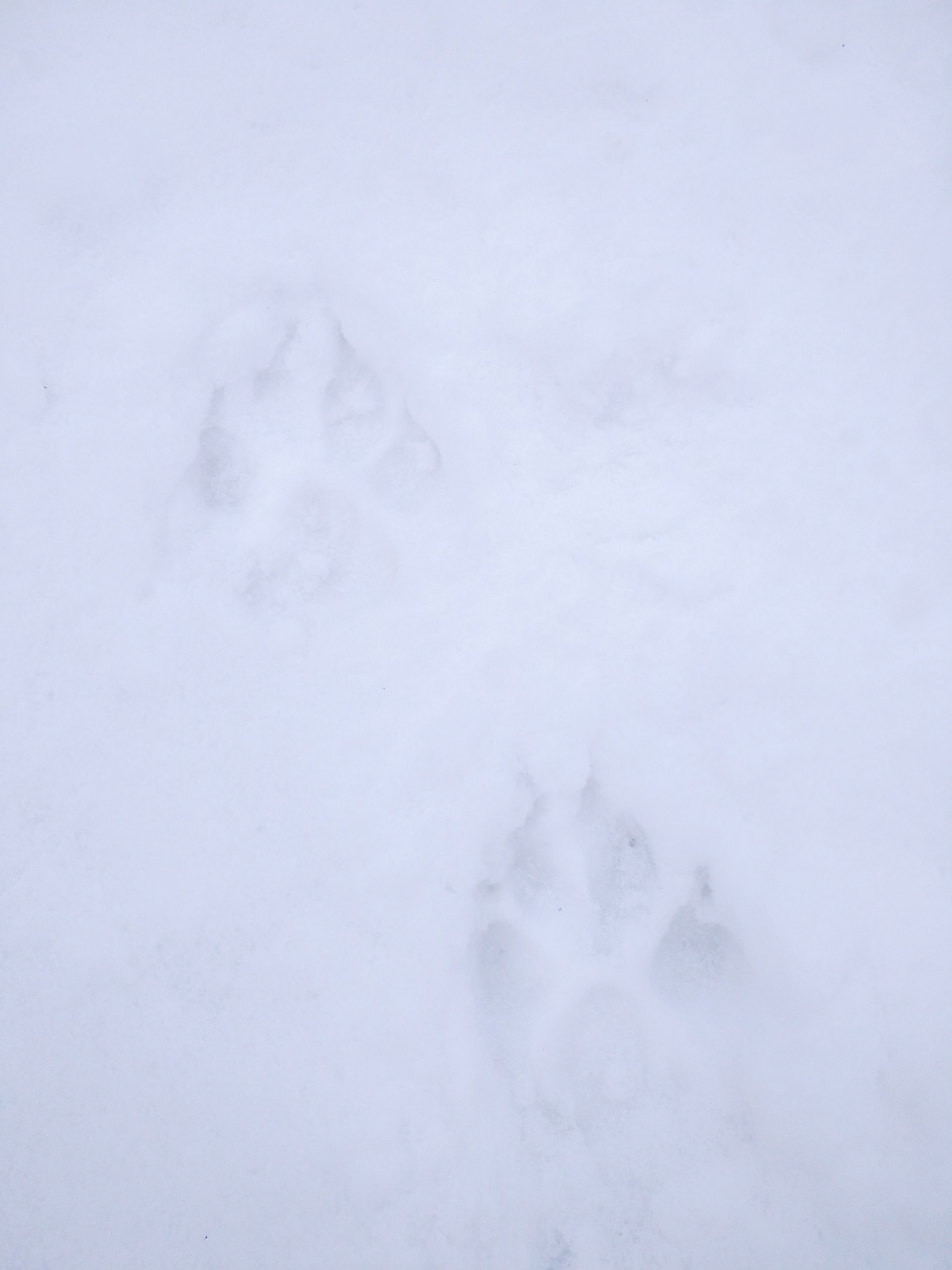 よくよく調べてみると、クマのそれとは違い、犬・タヌキ・キツネ・オオカミあたりの足跡と酷似。足跡の付き方からタヌキではなく、オオカミも野良犬もいないのでキツネでしょうか?真相は謎のまま…。