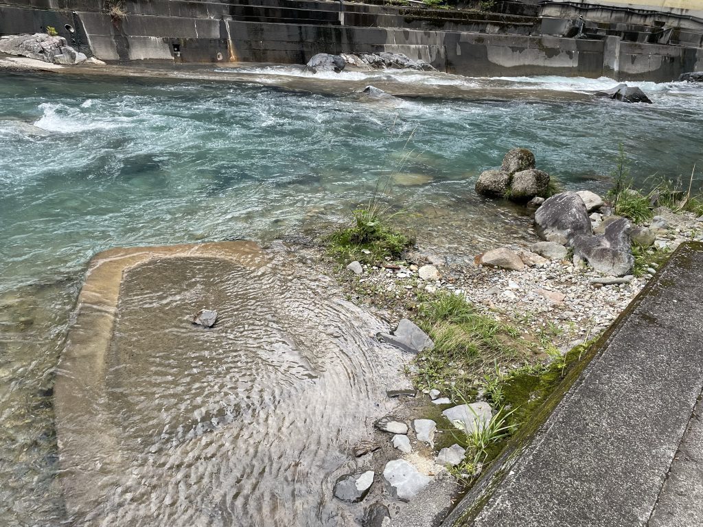深さは40センチ程度。川の流れが早いので、お気をつけください。少し足を浸かるぐらいが楽しめる場所かもしれません。