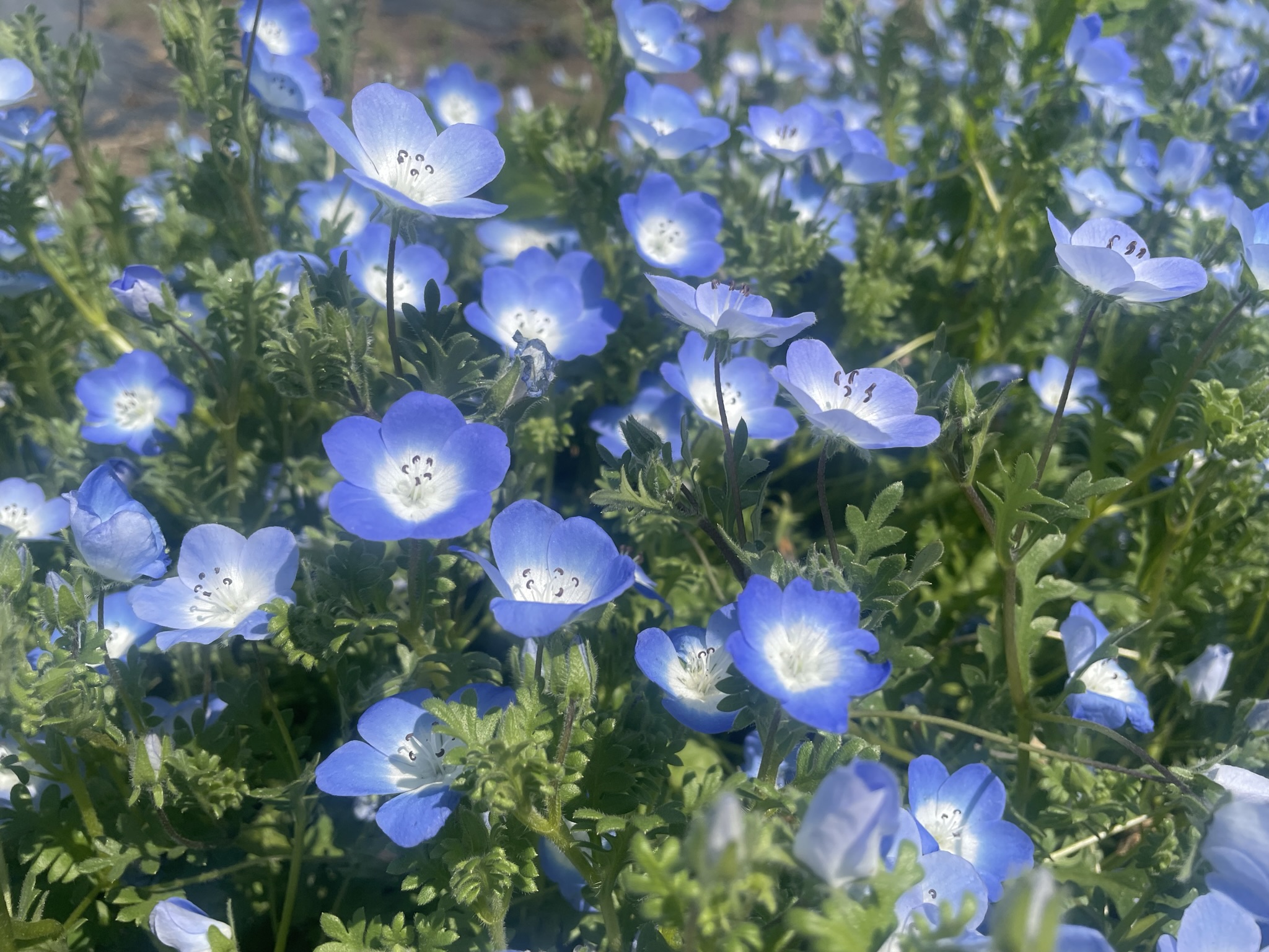 青ばかりではなく黒や白、斑点模様などネモフィラも種類が豊富ということを初めて知りました。