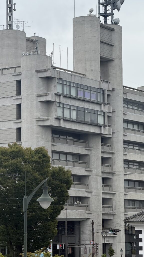 甲府駅のお隣にあるビル。設計は東京都庁でお馴染みの丹下健三。当時流行っていたメタボリズムなどの要素を感じてファンにはたまらない建築です。