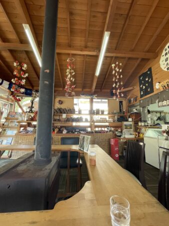 ほっこりする店内で、六合の民芸品などが並んでいます。