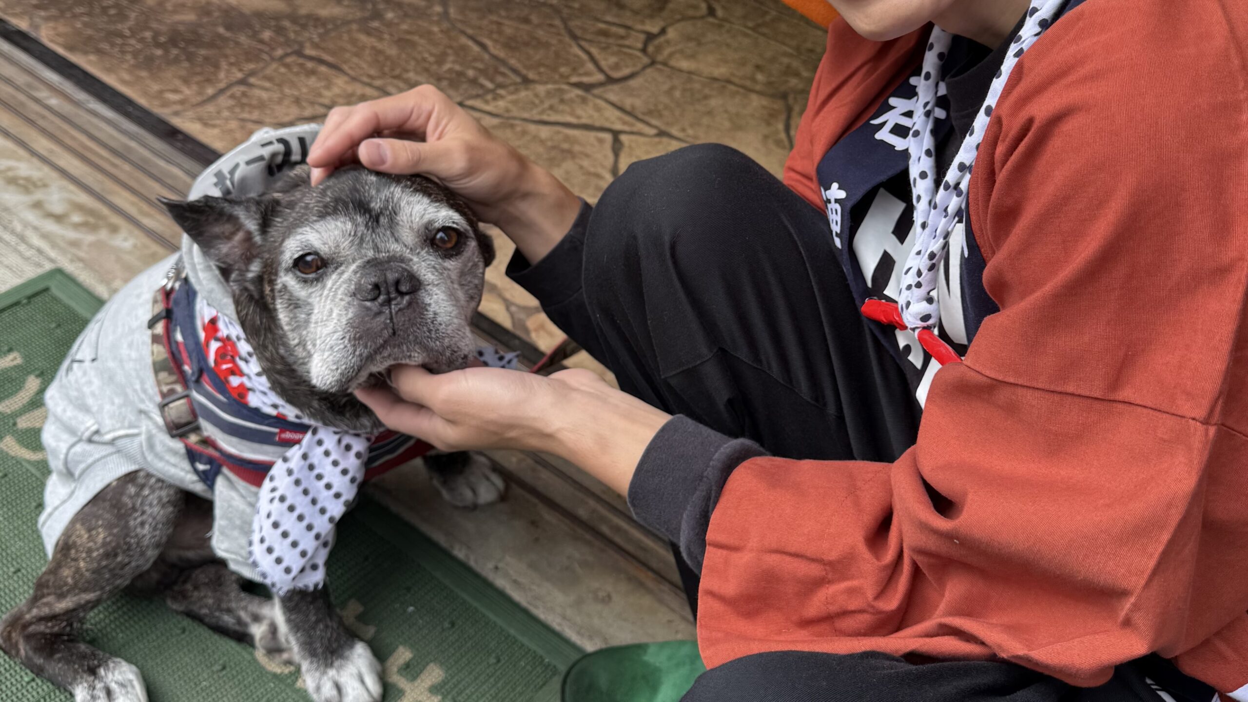 豆絞りを首に巻いたお祭り仕様で、とてもキュートです。