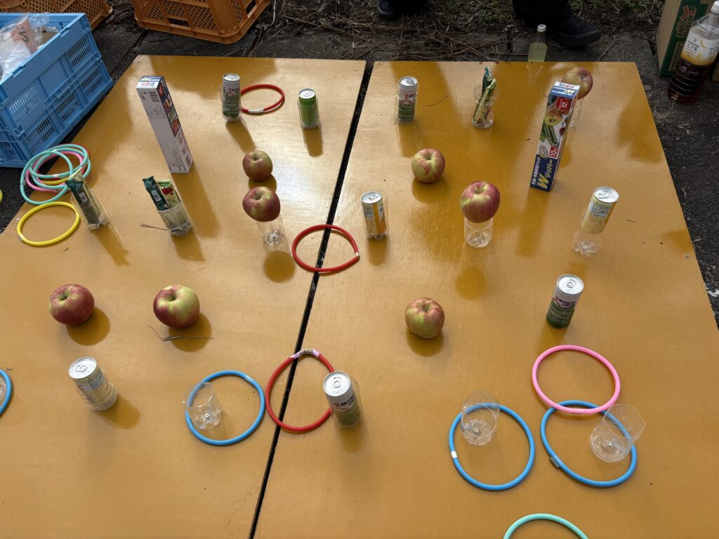 りんごに輪投げをかける大会が開催されていたので、参加してみると、なんと5つ中4つも輪がかかり、100円で4個のリンゴをいただきました🙌
