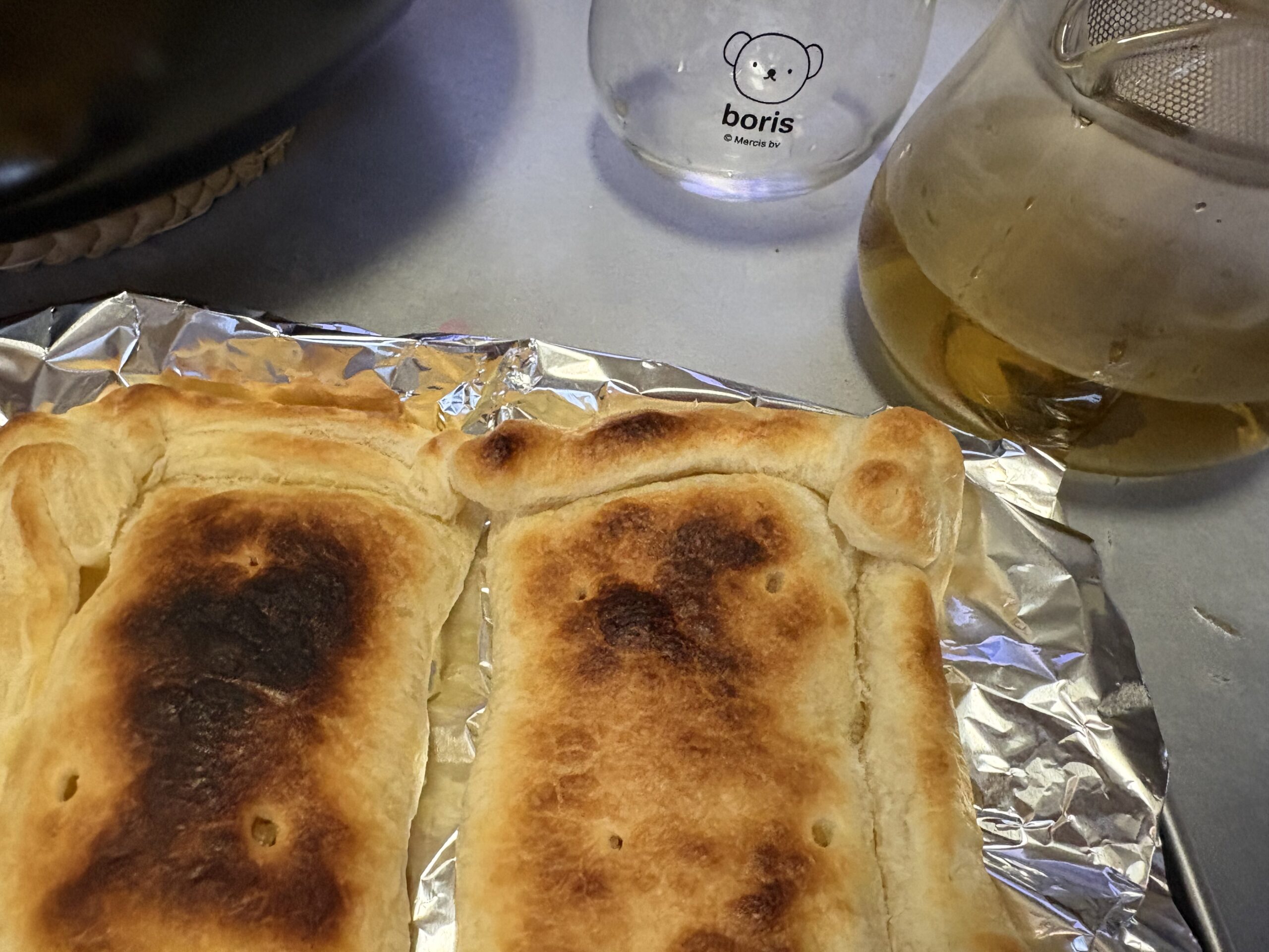 輪投げ後は、スーパーに直行し、お家でアップルパイを作りました。