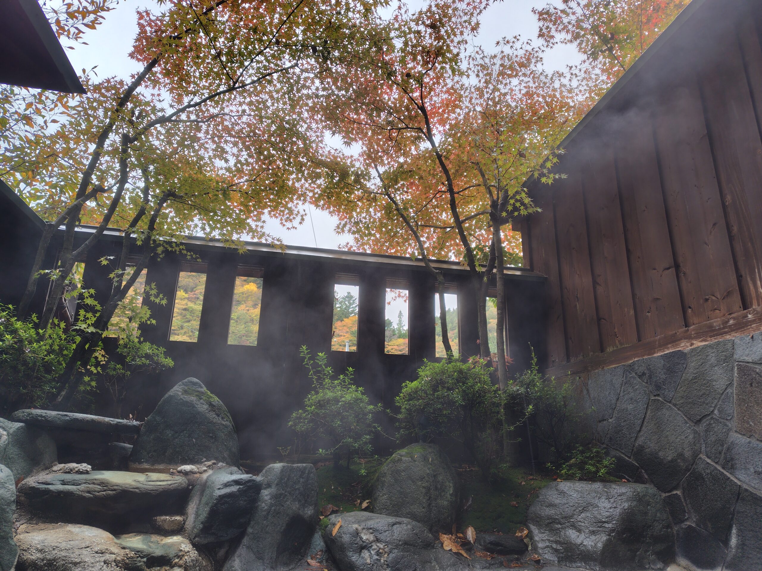 柏屋旅館の「楓の湯」も、今まさに見頃を迎えていて、利用されるお客さまも多く、この時期は一番人気のお風呂となっています!