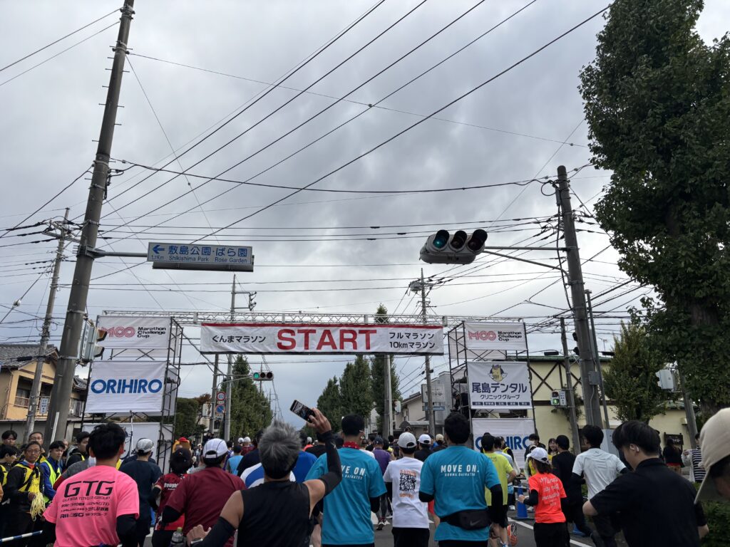 曇り空の中いざ、スタート!フルマラソンへの挑戦が始まりました!!😆