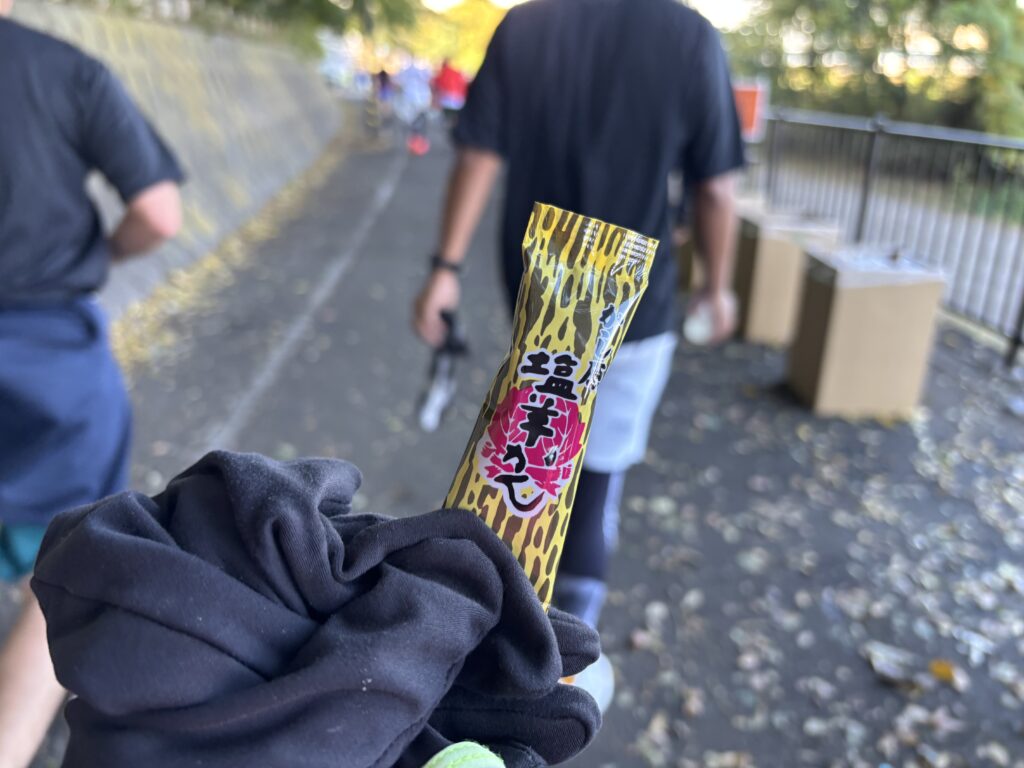 37キロ地点!残り5キロです!羊羹をいただきました😆やっぱり甘いもの…糖分補給がとっても大切でした!