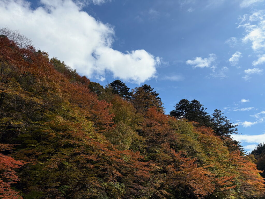 現在は、葉っぱが舞い始めていますが、山並みはまだ赤や黄色で彩られており、もう少し楽しめそうといったところです🍁