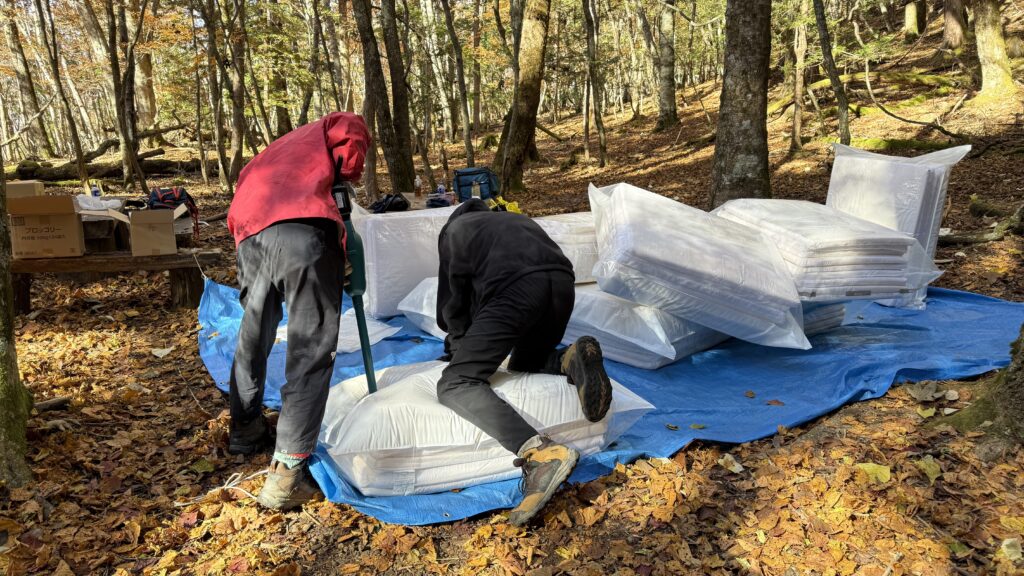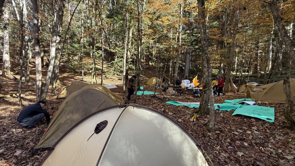 某キャンプ場のテントを撤収し、麓の山小屋まで運ぶのが今回のミッション。