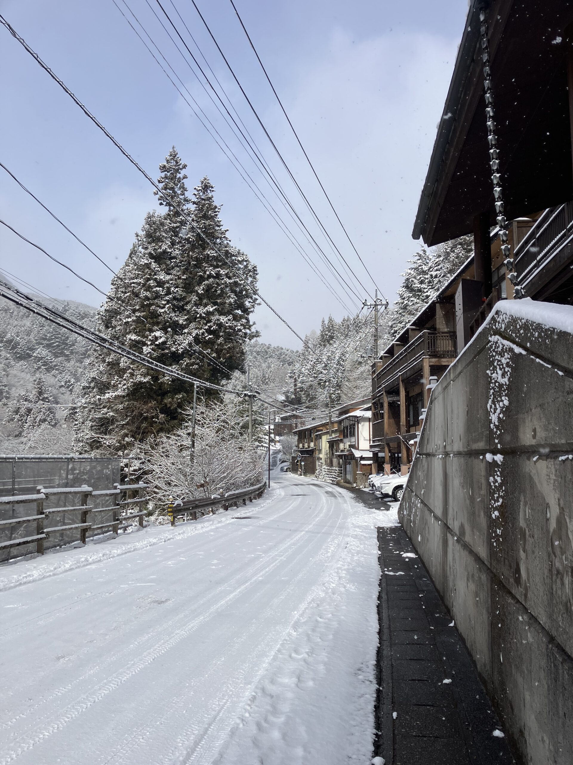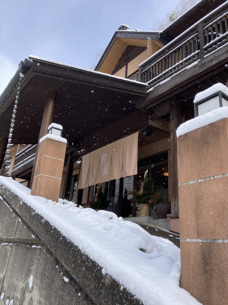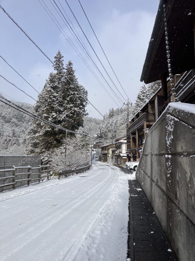 四万温泉、雪が降りました!!