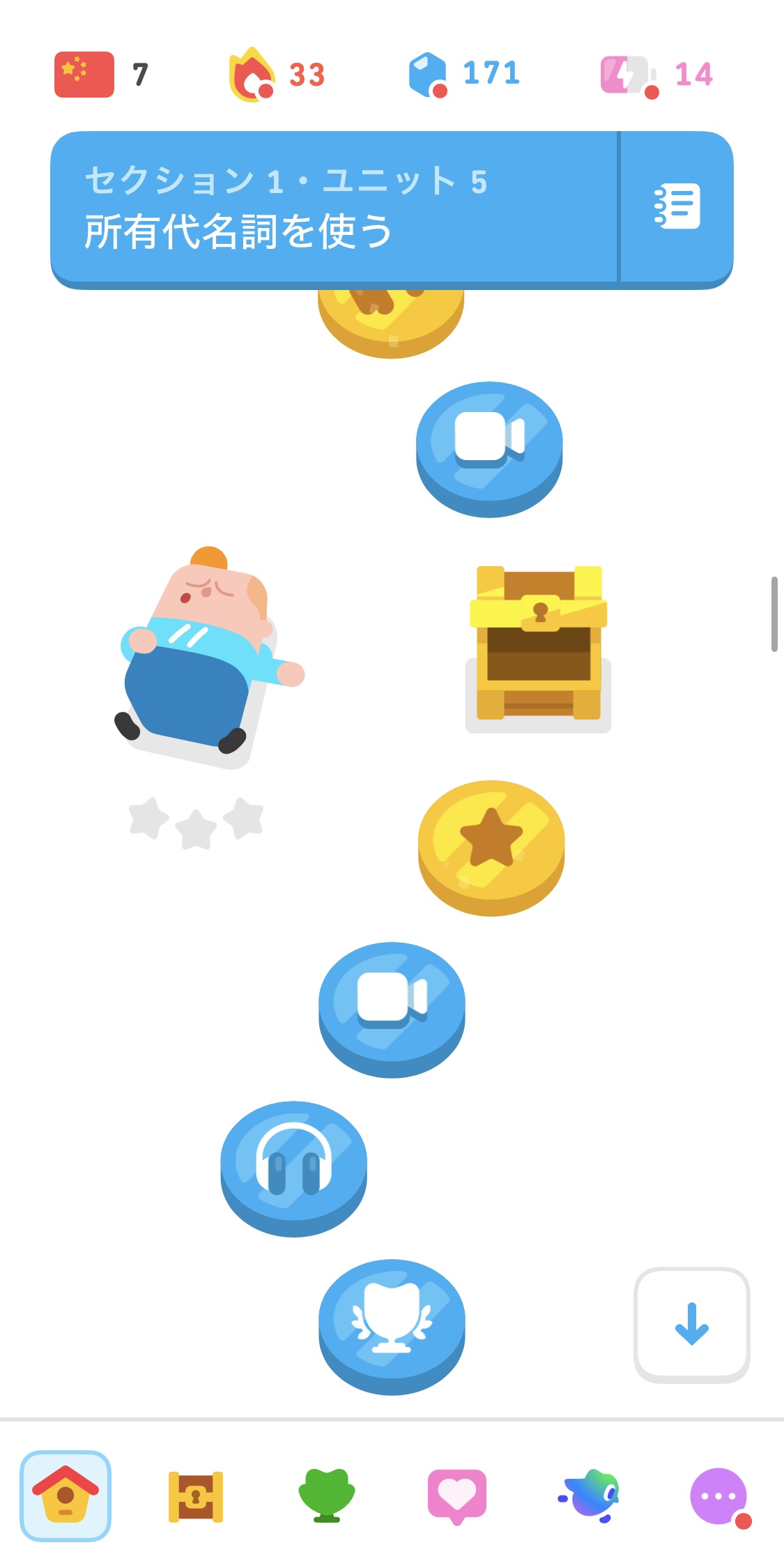 やらないとこの緑のフクロウ”Duo”が表情を変えて圧をかけてくるので続けざるを得ません。