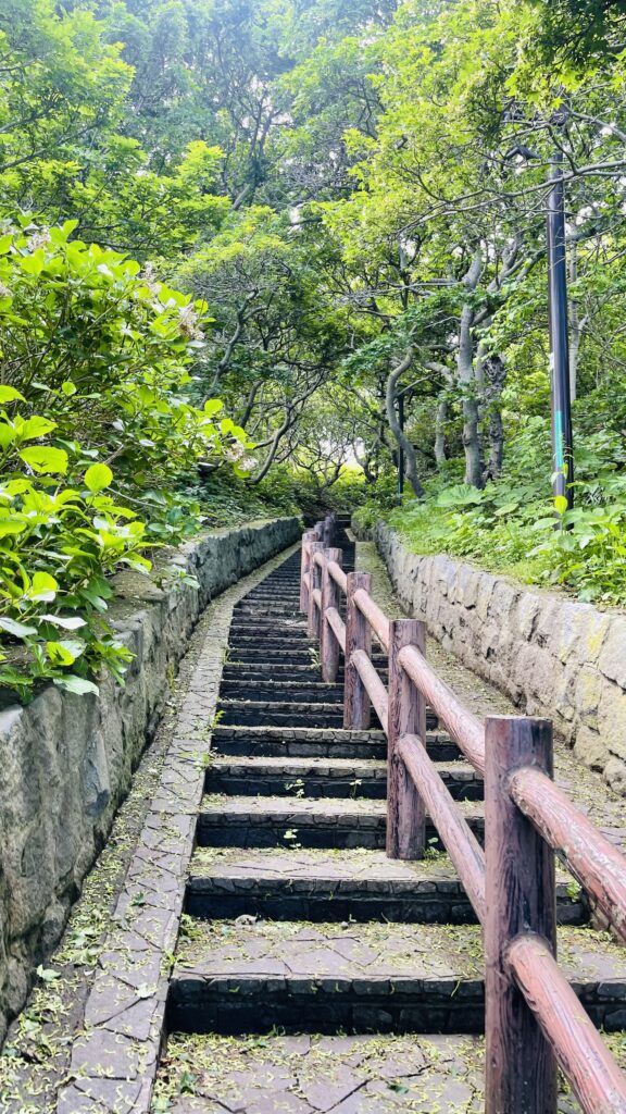 こちらは青森県の左側の先端。龍飛崎にある通称階段国道。