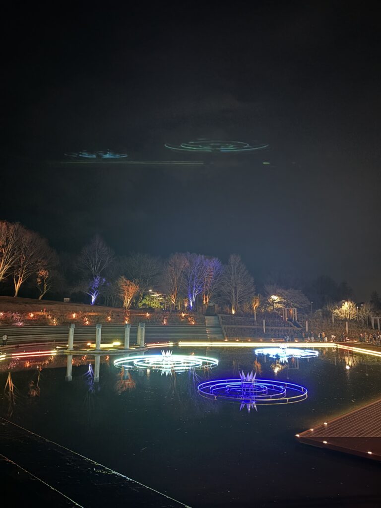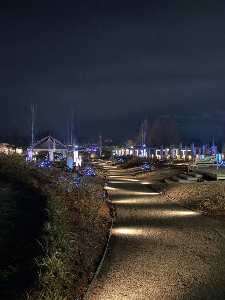 テーマは「自然とつながる」です。木がライトアップされていたり、お花を模したイルミネーションが園内の至る所に施されていて、光のお花畑を歩いているようでした。