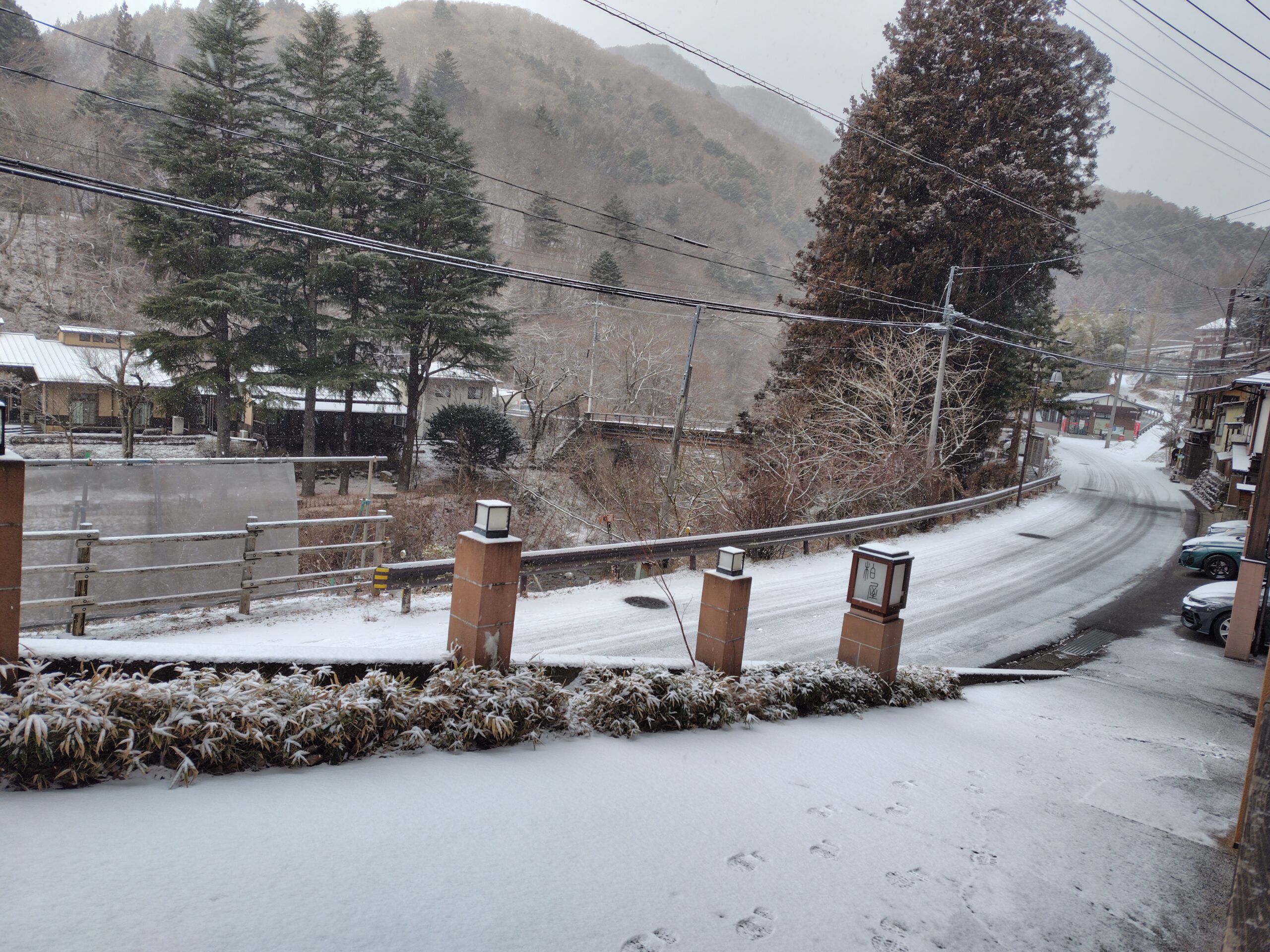 日本海側では大雪に見舞われている地域も多いようですが、今朝の四万温泉はうっすらと雪が積もった程度でした。お昼には、すでに溶けてしまった場所も多かったです。