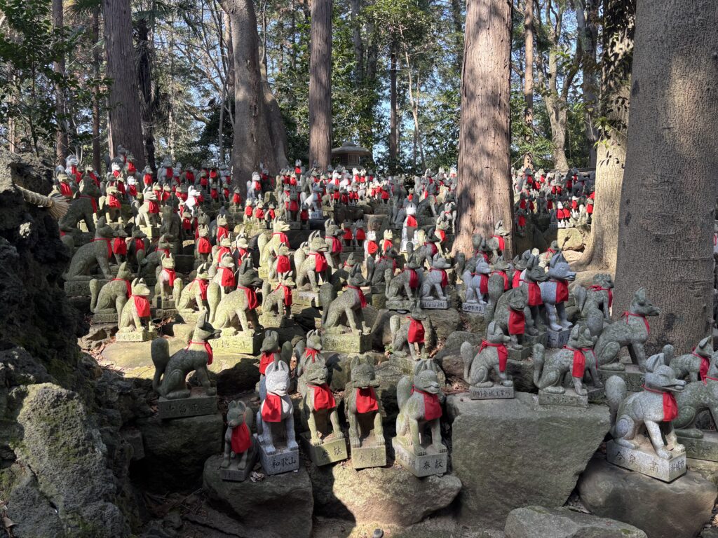 境内を進んでいくと、霊狐塚というキツネ像がたくさんあります。