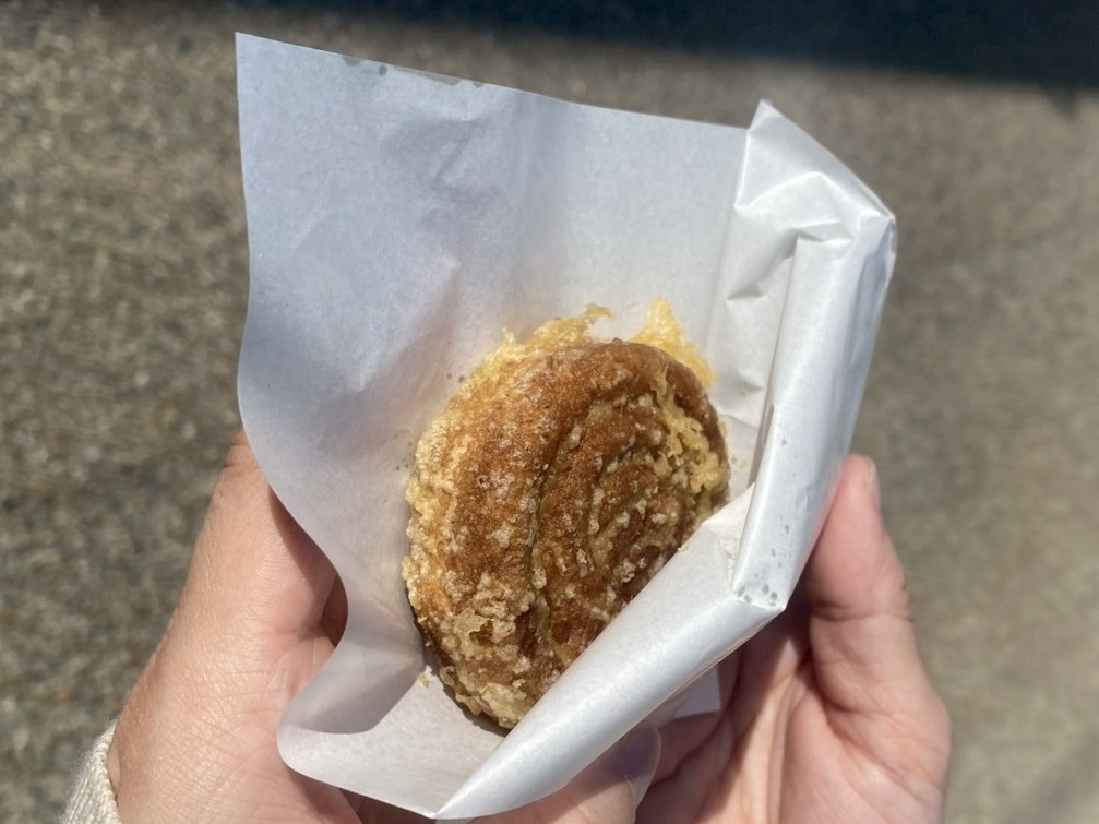 豊川名物の宝珠まんじゅうを揚げたものをいただいたり!
