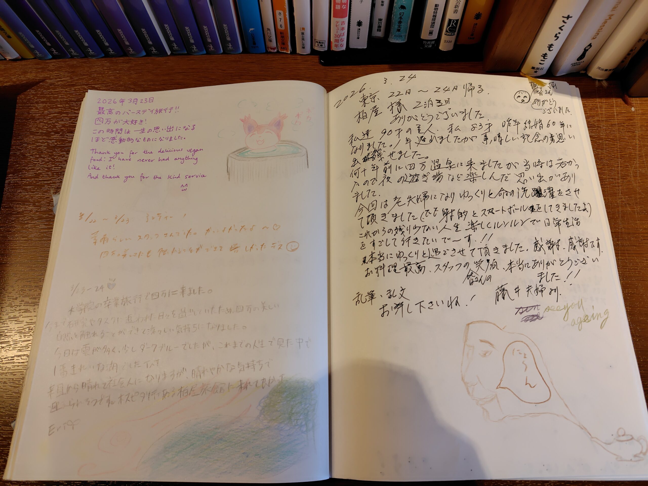 つい先日、柏屋旅館のライブラリーに置いてある想い出ノートを開いてみると、