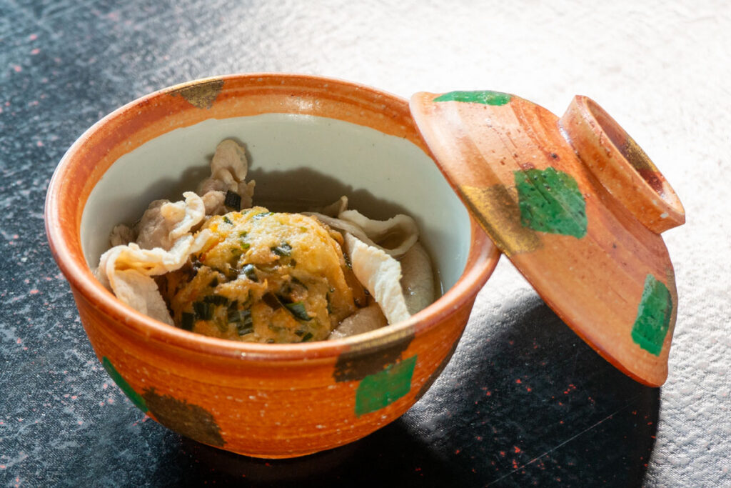 鶏ひきにくの実山椒入り絹田巻 筍 人参