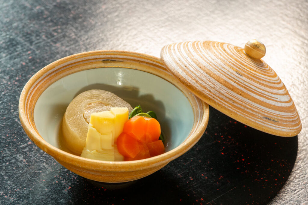 蕗のとう、たけのこ、独活など、春の山菜を中心にお作りし、出汁を効かせた優しい味の献立に仕上げました。