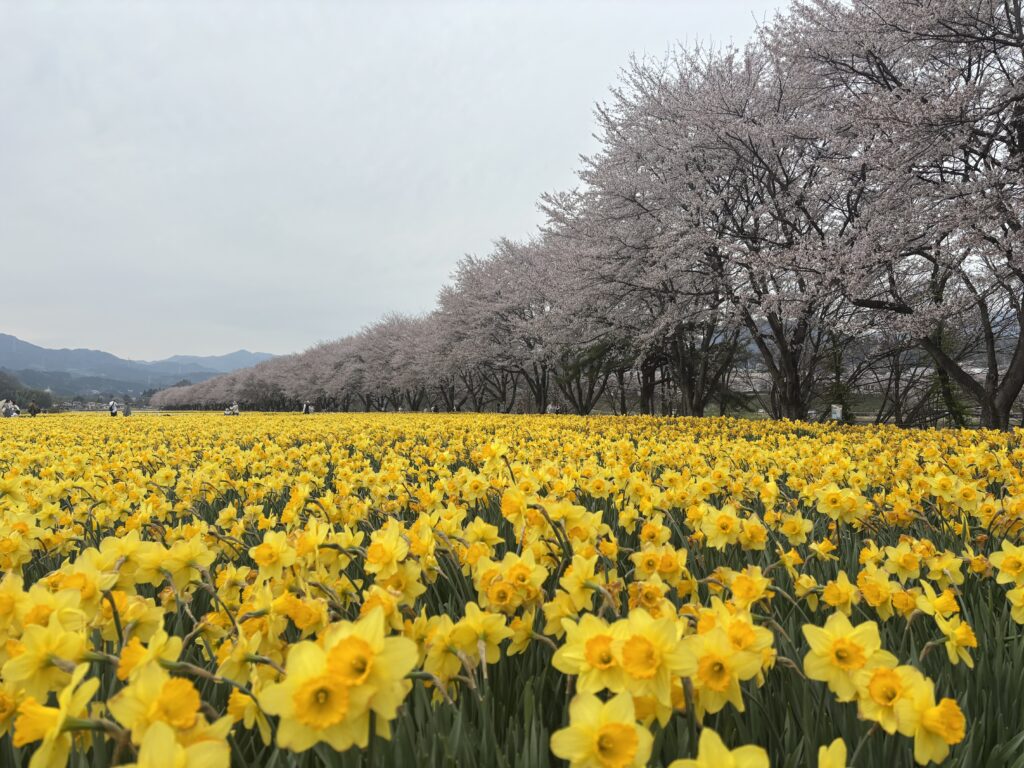 東吾妻町にある、「岩井親水公園」の桜と水仙が満開でした🌸