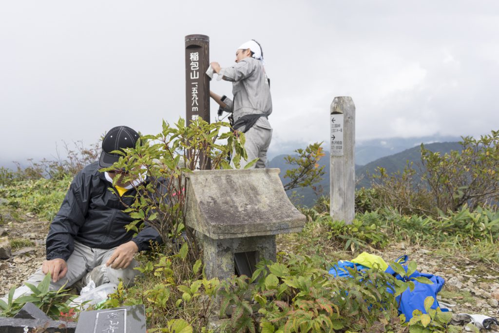四万温泉の奥の奥、新潟県境にある「稲包山」に登山道の整備をしつつ登ってきました。
