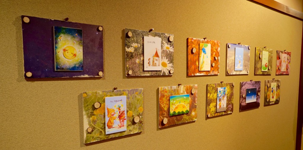 アートの展示では、心温まる優しいイラストを描く、柏屋旅館スタッフの宮本の作品を柏屋旅館に、そして、中之条の石彫刻人・斎木三男さんの作品を柏屋カフェに展示しています。