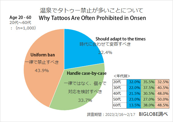 According to a 2023 survey by a major Japanese onsen portal site, about 44% of respondents still believe tattoos should be prohibited in public baths.