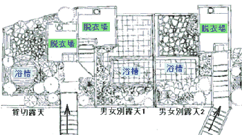 ◆男女別露天と貸切専用露天の3つのお風呂ができます。