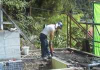解体したお風呂をベースに新しく浴槽の形を作っています。